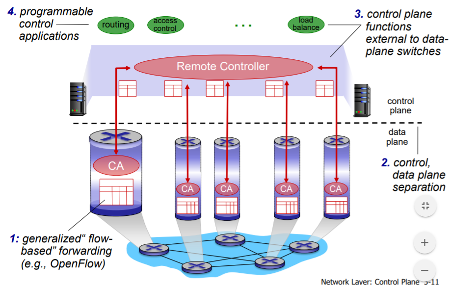 SDN은 그전에 network layer에서 배운 컨트롤 플레인과 데이터 플레인을 분리하고,