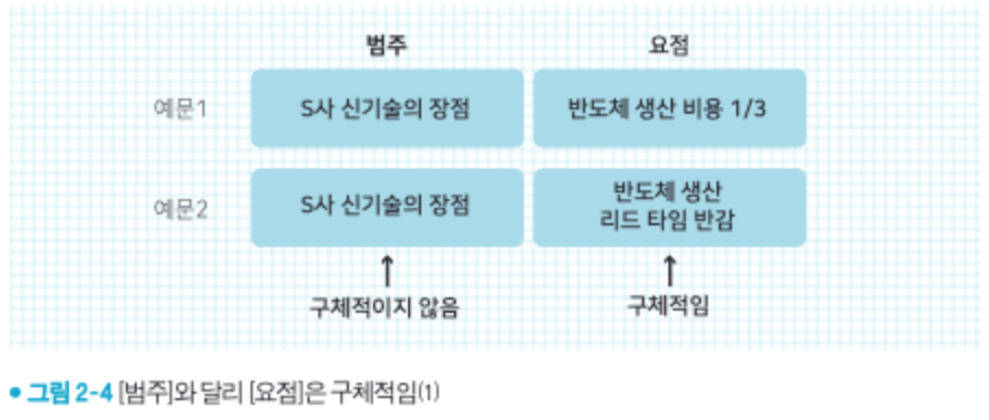 범주와 요점을 구분하는 기준은 정보의 구체성이다.