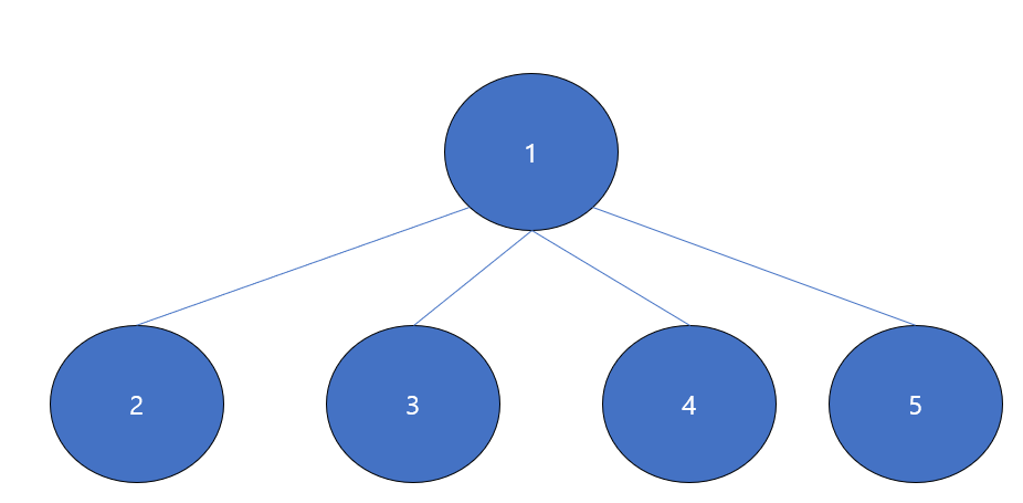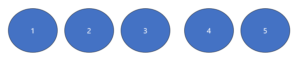 위 그림은 {1},{2},{3},{4},{5}를 표현한 그림이다. 각 집합은 어떠한 상관관계도 보이지 않는다.