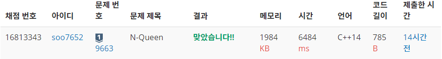 문제 링크 : https://www.acmicpc.net/problem/9663