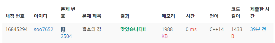문제 링크 : https://www.acmicpc.net/problem/2504