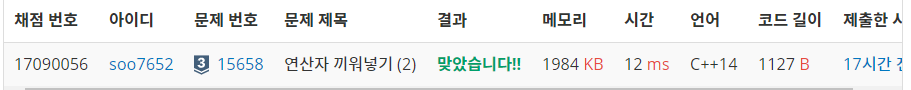 이 문제는 개인적으로는 그 전 시리즈 문제 (BOJ 14888번 연산자 끼워넣기 https://www.acmicpc.net/problem/14888)